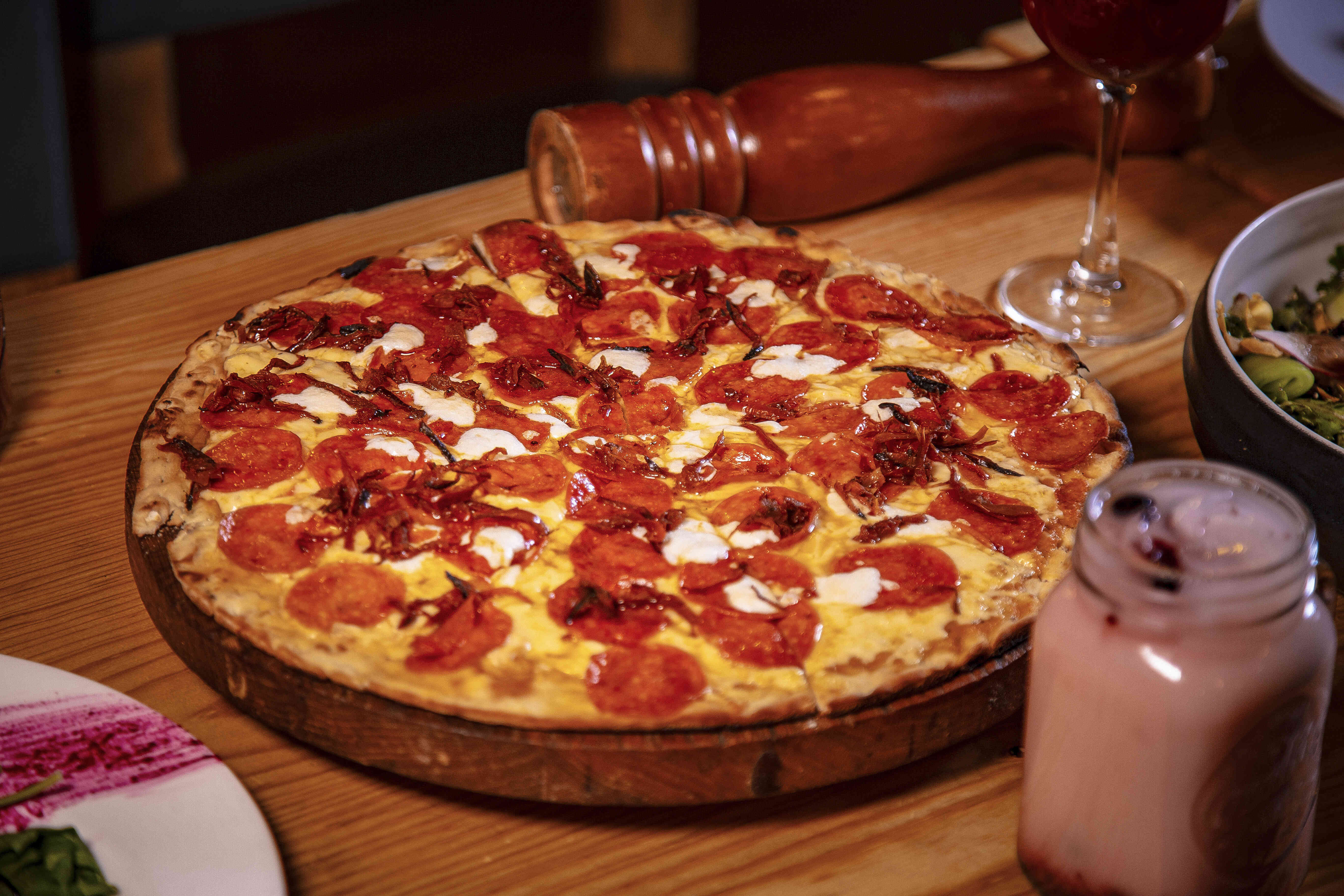Tomate deshidratado, cebolla caramelizada, aceituna negra, pepperoni