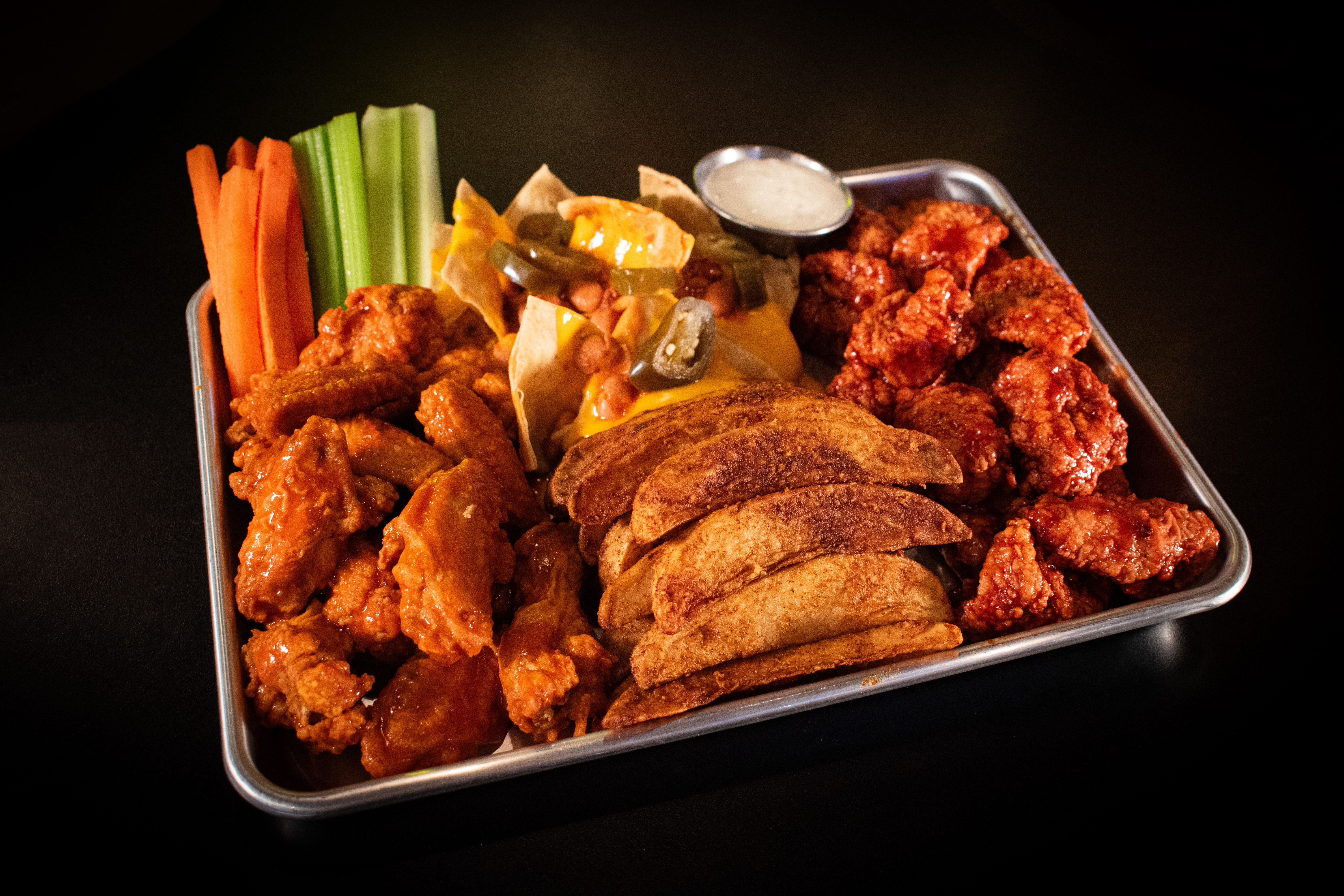 500 gr De Alitas (10pz aprox), Bañadas en 1 Salsa, Incluyen Papas, Verdura y Aderezo