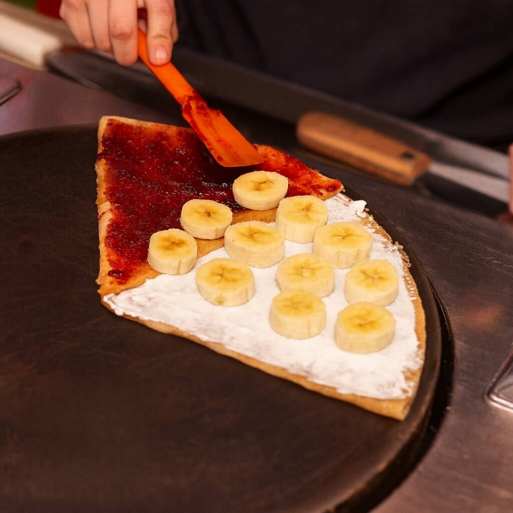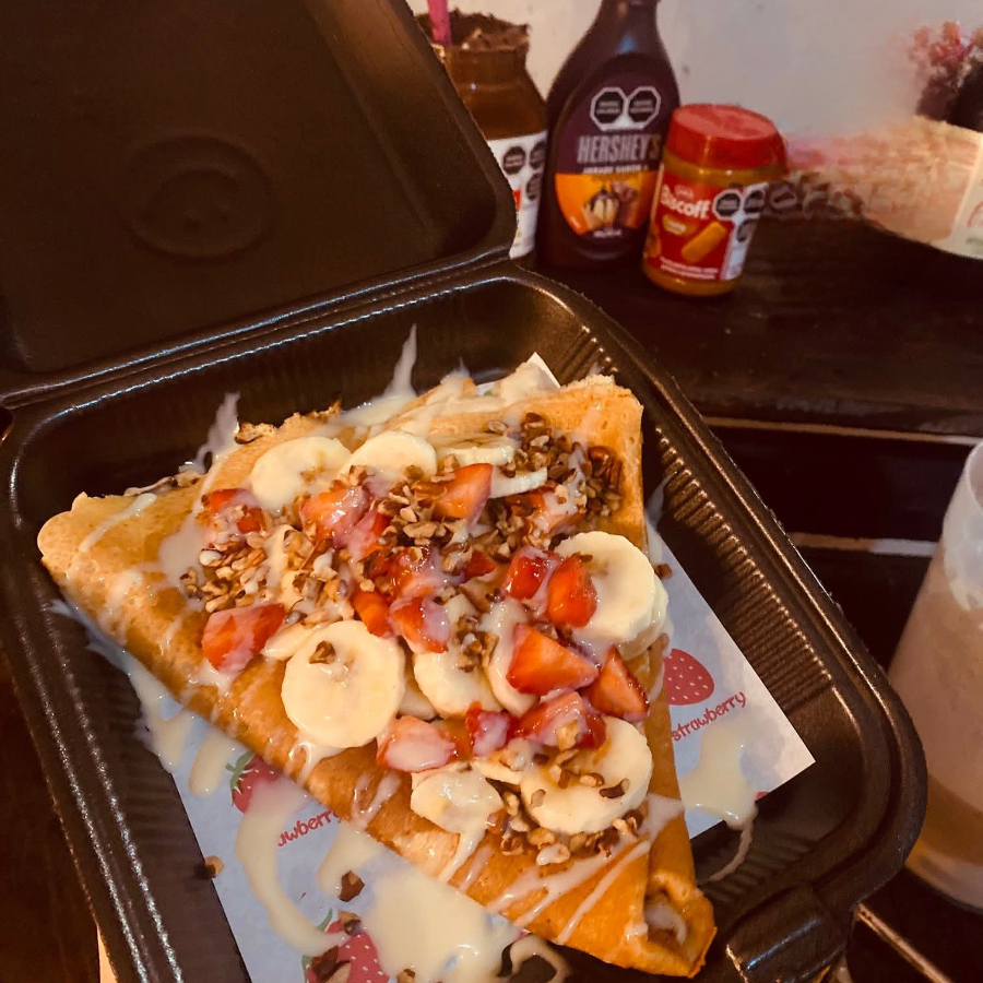 philadelphia lechera platano fresa y nuez es una crepa para los exigentes en sabores y lo mas completo que hay en la tienda
