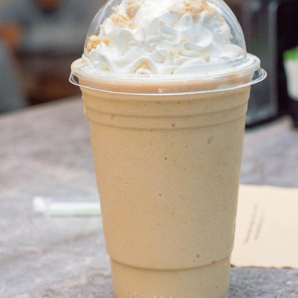 frappe de caramelo con cafe elaborado con cafe nescafe. acompañado de cajeta coronado.(Leche deslactosada)