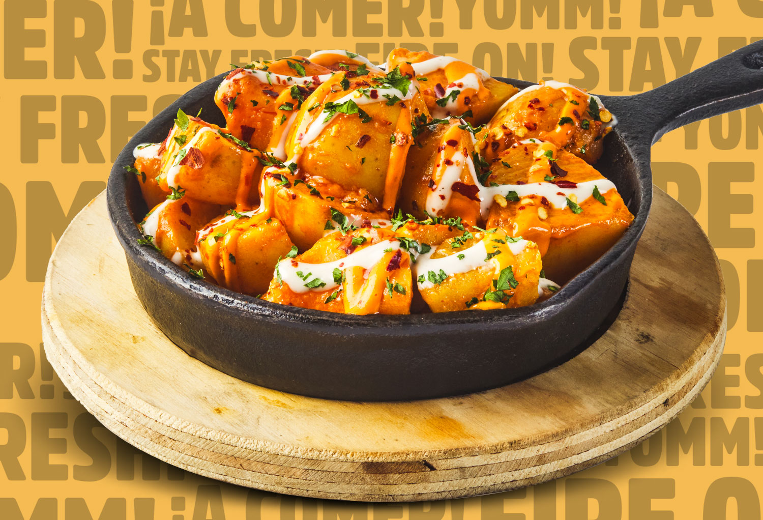 Deliciosa papa cambray (400 g) bañadas en una combinación de mantequilla (30 ml) y salsa a elección (120 ml). Acompañadas con una capa superior de aderezo ranch (30 ml) y espolvoreadas con chile triturado y perejil. ¡Te recomendamos pedirlas bañadas en Salsa Lemon Pepe o Habañera!