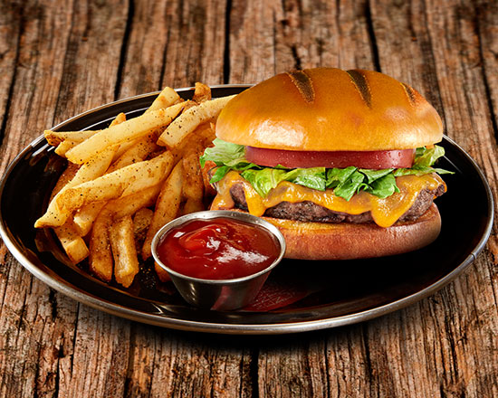Nuestra hamburguesa clásica preparada con jugosa y ahumada carne de res (200 g) condimentada con una mezcla secreta de especias, queso cheddar derretido, lechuga y jitomate sobre pan brioche con mantequilla.