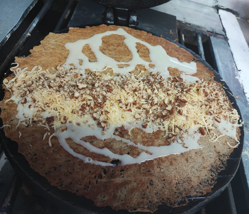 Base pan crepa donde van los rellenos o base pan marquesita que ya incluye queso de bola.