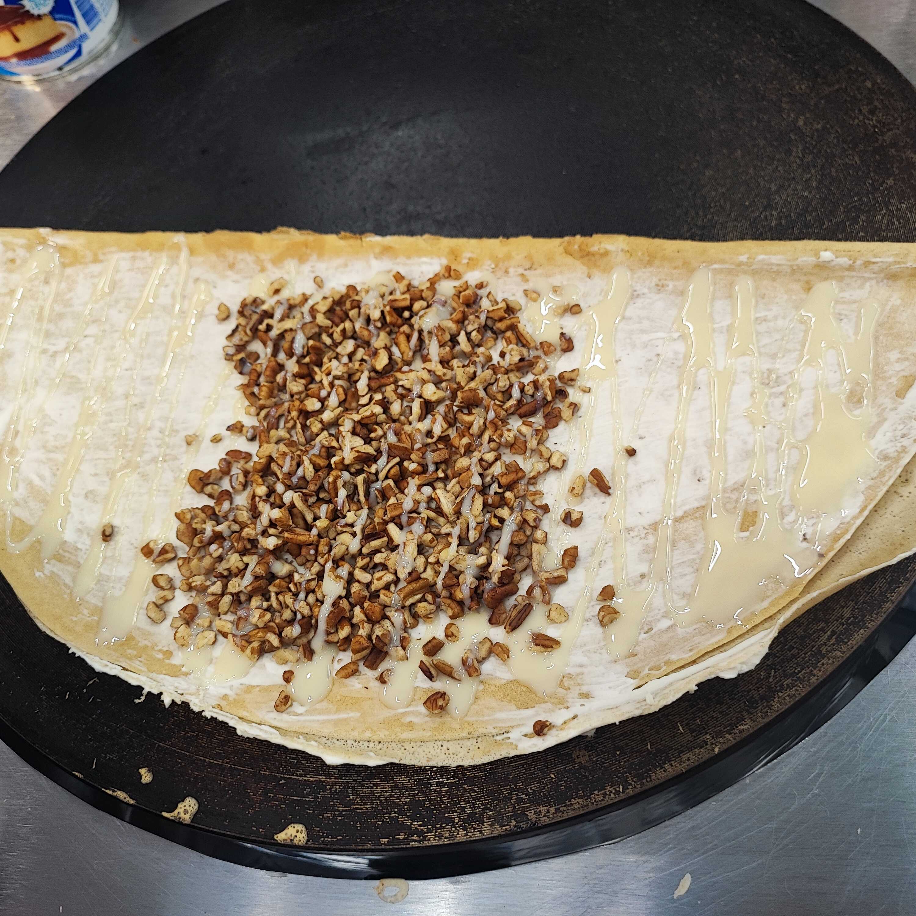 base pan crepa rellena de queso philadelphia' nuez y lechera.