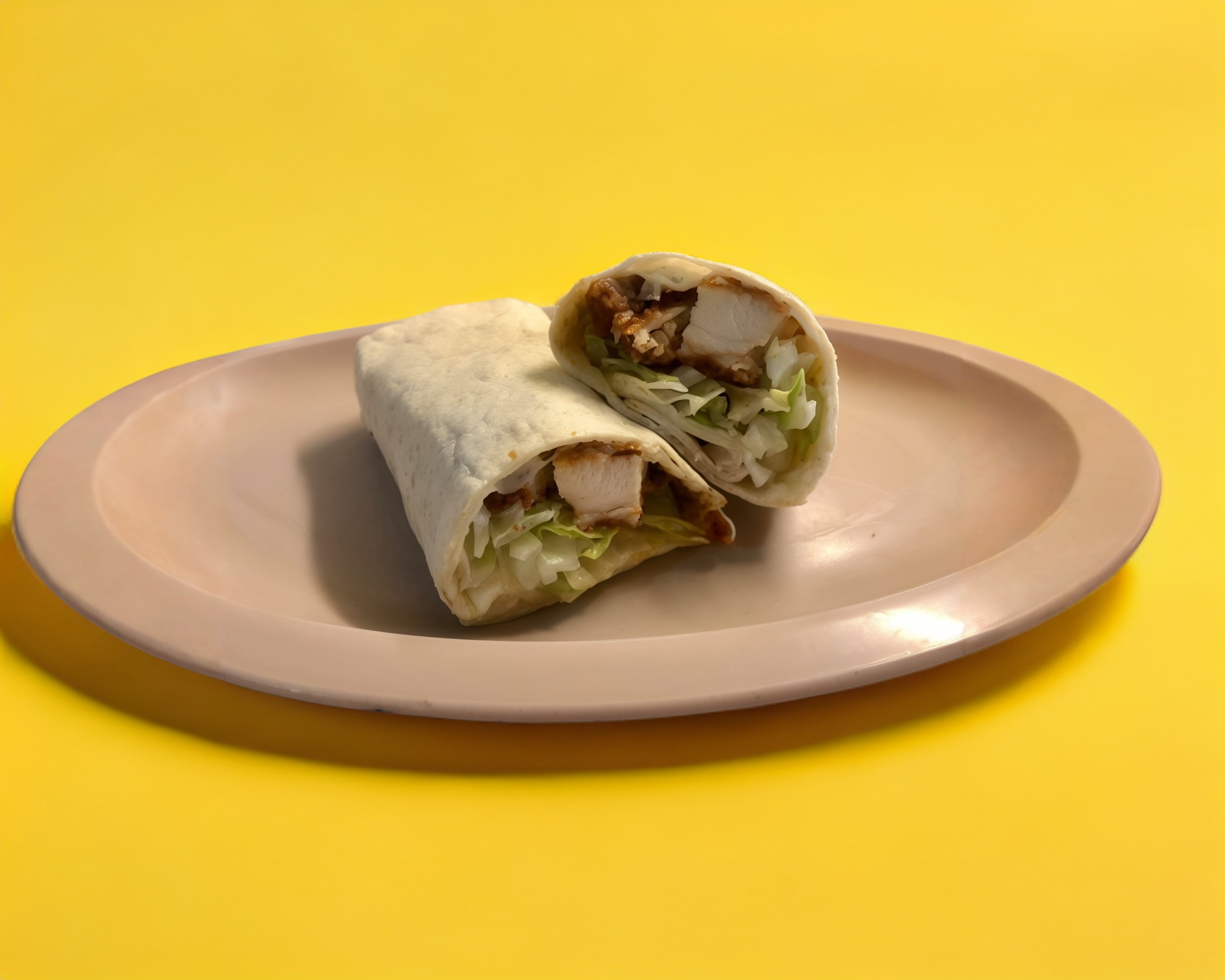 Burrito de pechuga de pollo empanizada con aderezo, lechuga y salsa de la casa.