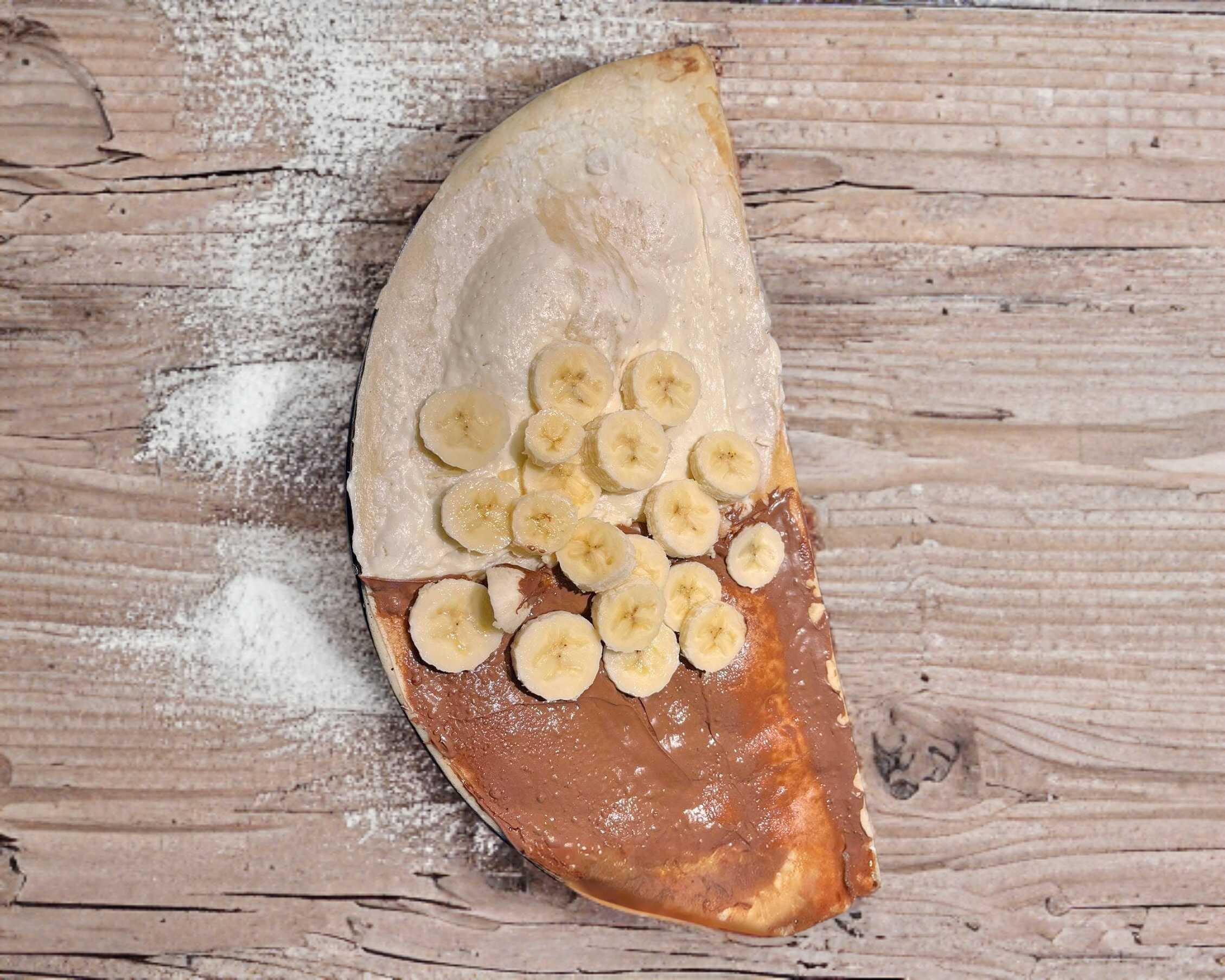 Crepa a base de crema de avellana Nutella y Philadelphia con trozos de platano