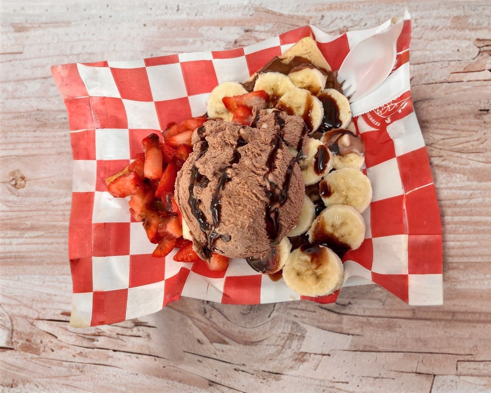 Crepa de Nutella, Platano, Fresas y Helado
