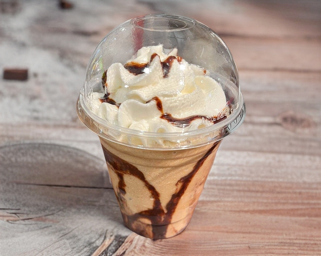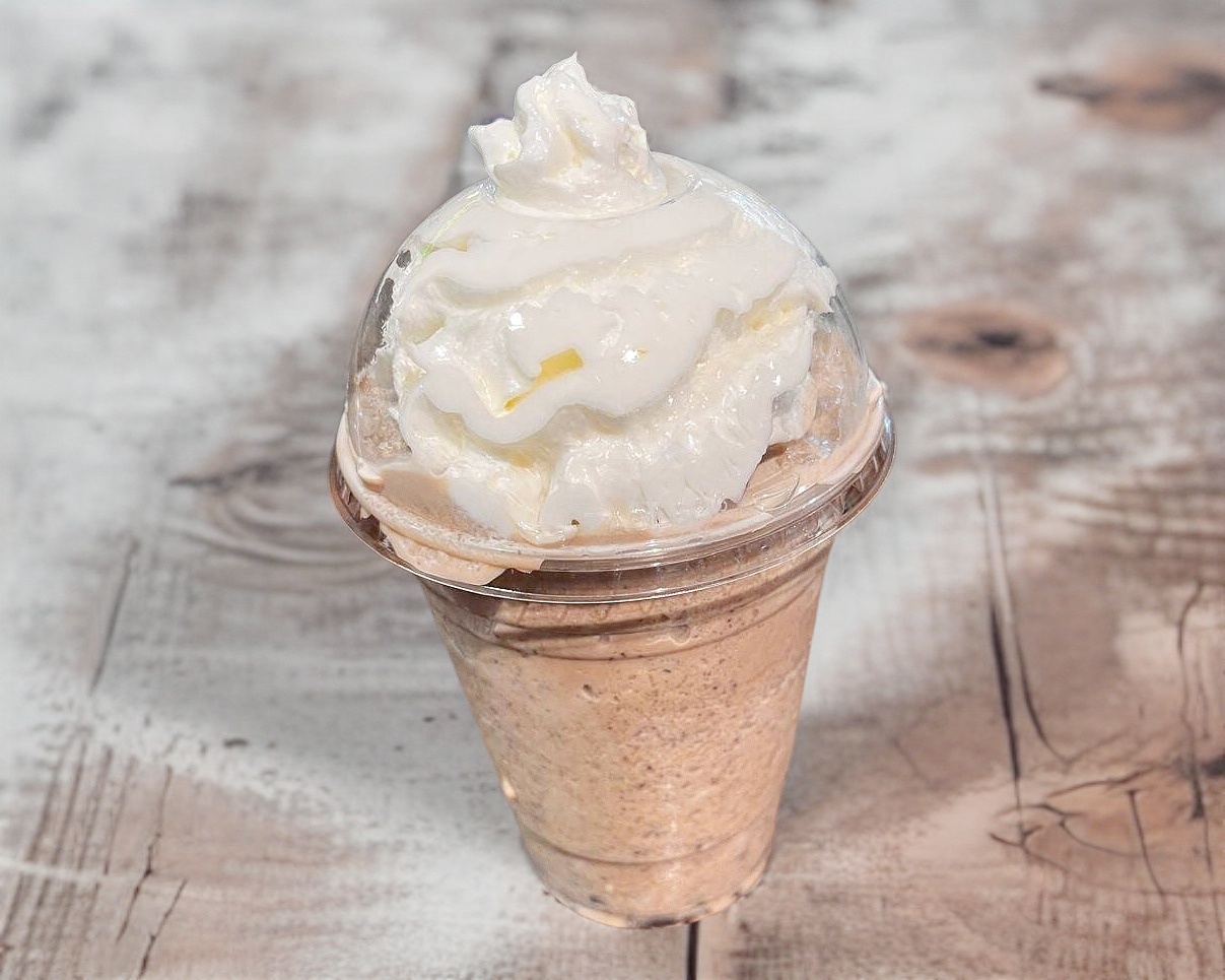 Bebida frappeada con base sabor Moka y chocolate Hershey's adornado con crema batida