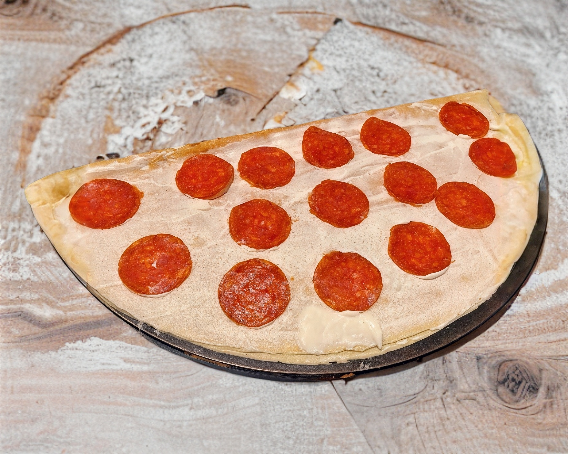 Crepa preparada con queso mozzarella y pepperoni
