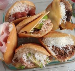 Torta cubana, frijol, pierna, jamón, queso, aguacate.