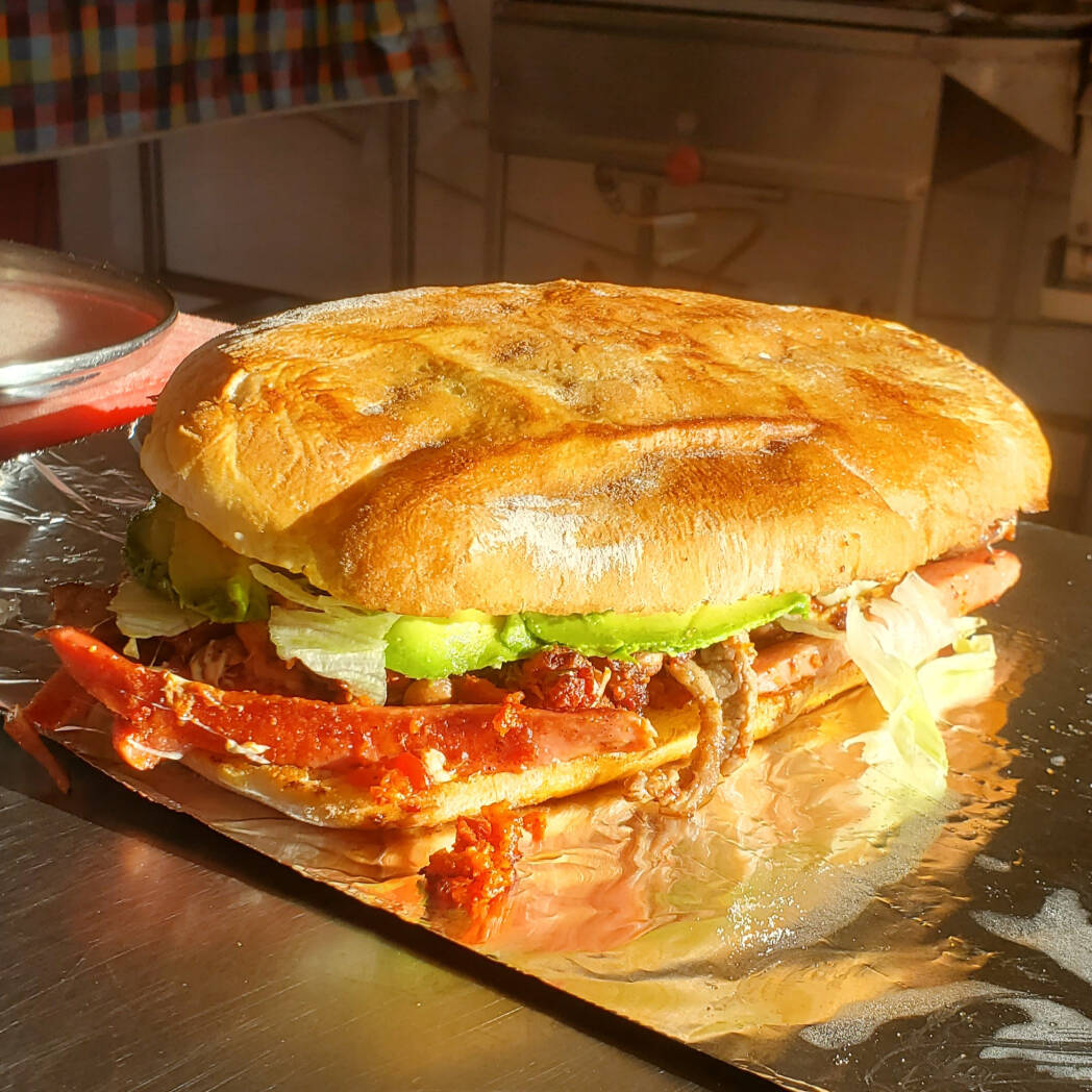 Deliciosa Torta Preparada Con Bistec A La Mexicana, Pastor y Queso