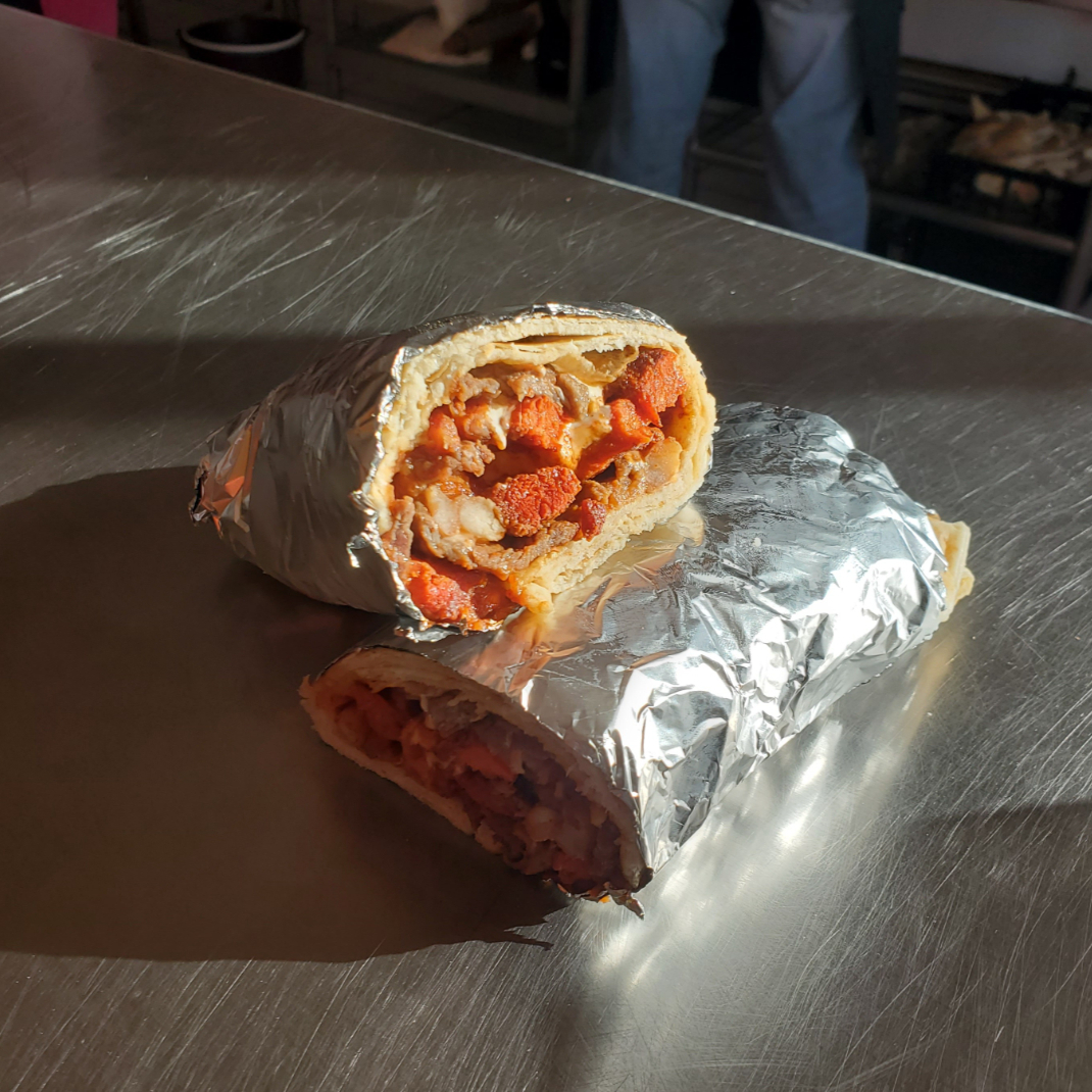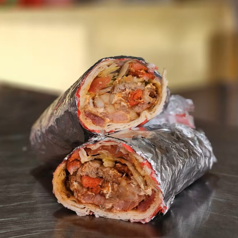 Delicioso Burrito Preparado con Bistec, Pastor, Pierna Y Queso