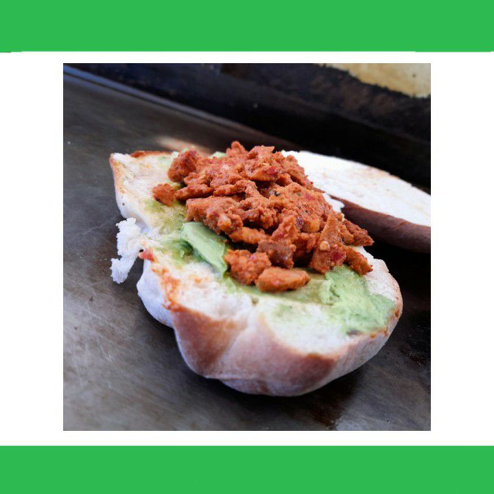 ( no contiene aguacate) contiene carnitas,cebolla,tomate,mayonesa y mostaza.