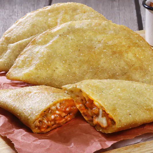 3 piezazs empanadas de maíz fritas, rellenas del guisado de tu preferencia acompañadas de ensalada fresca.