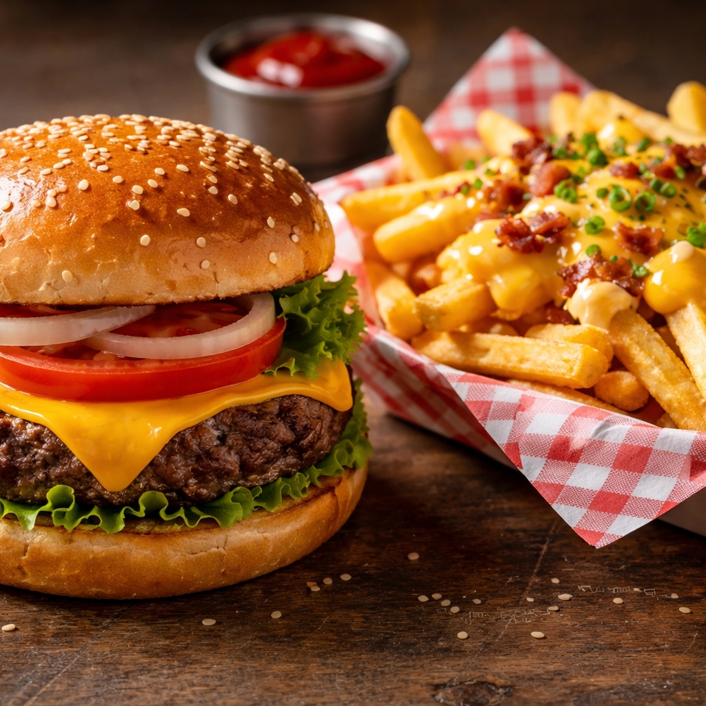 Hamburguesa Sencilla Mas Orden De Papas Con Queso
