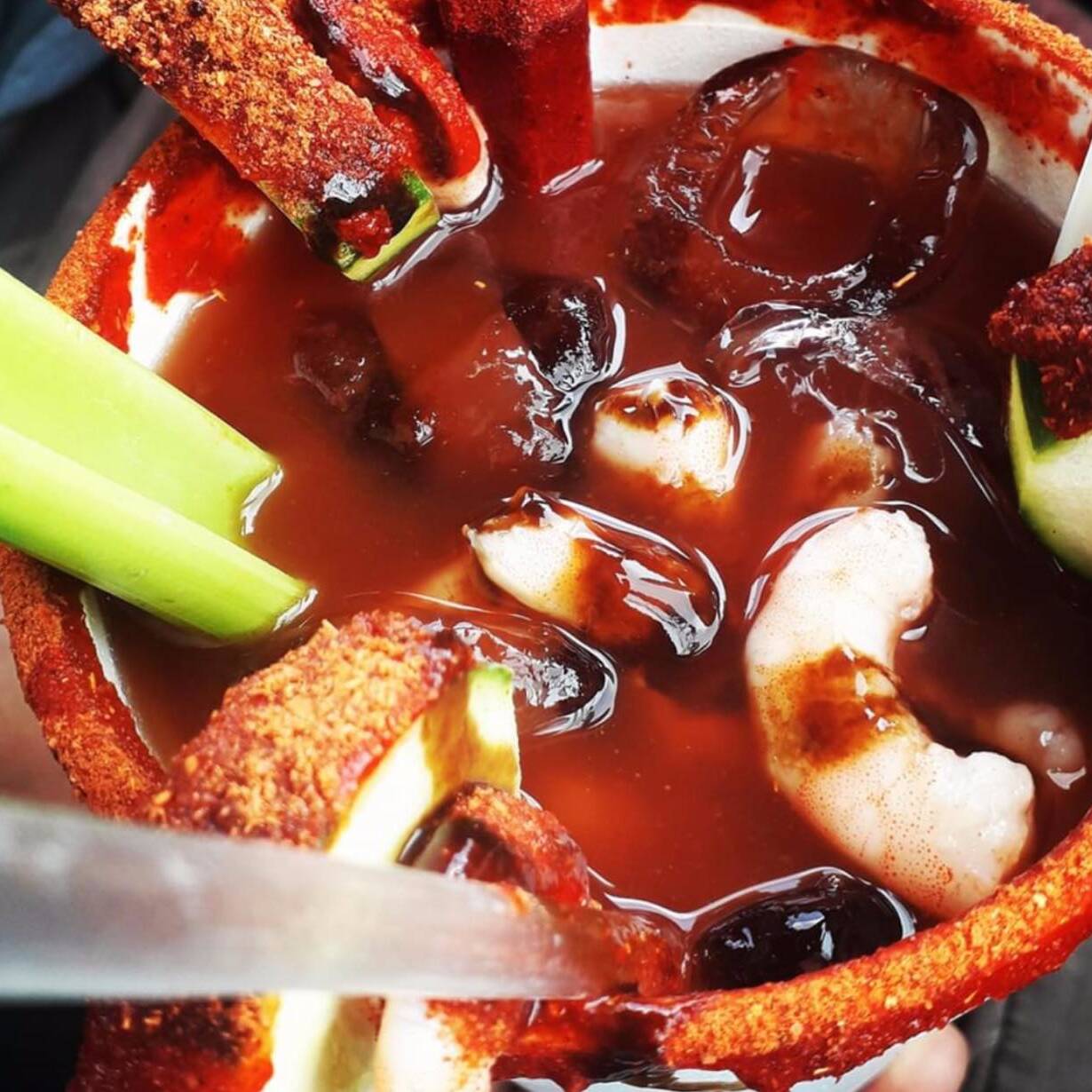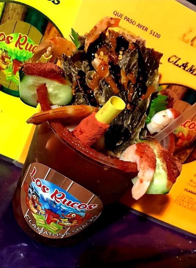 Litro de clámato preparado con salsa tradicional con carne seca y banderilla de tamarindo y apio.