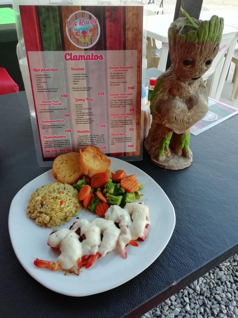 De camarón con ostión, salsa tradicional picosa con clámato, acompañado con chile limón.