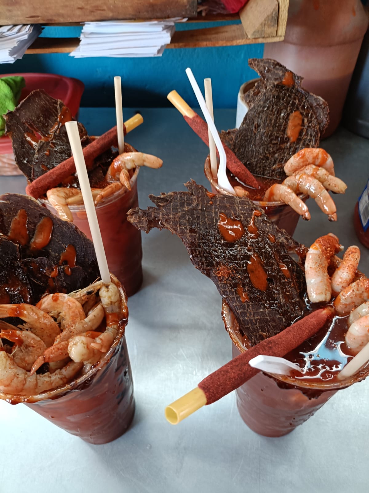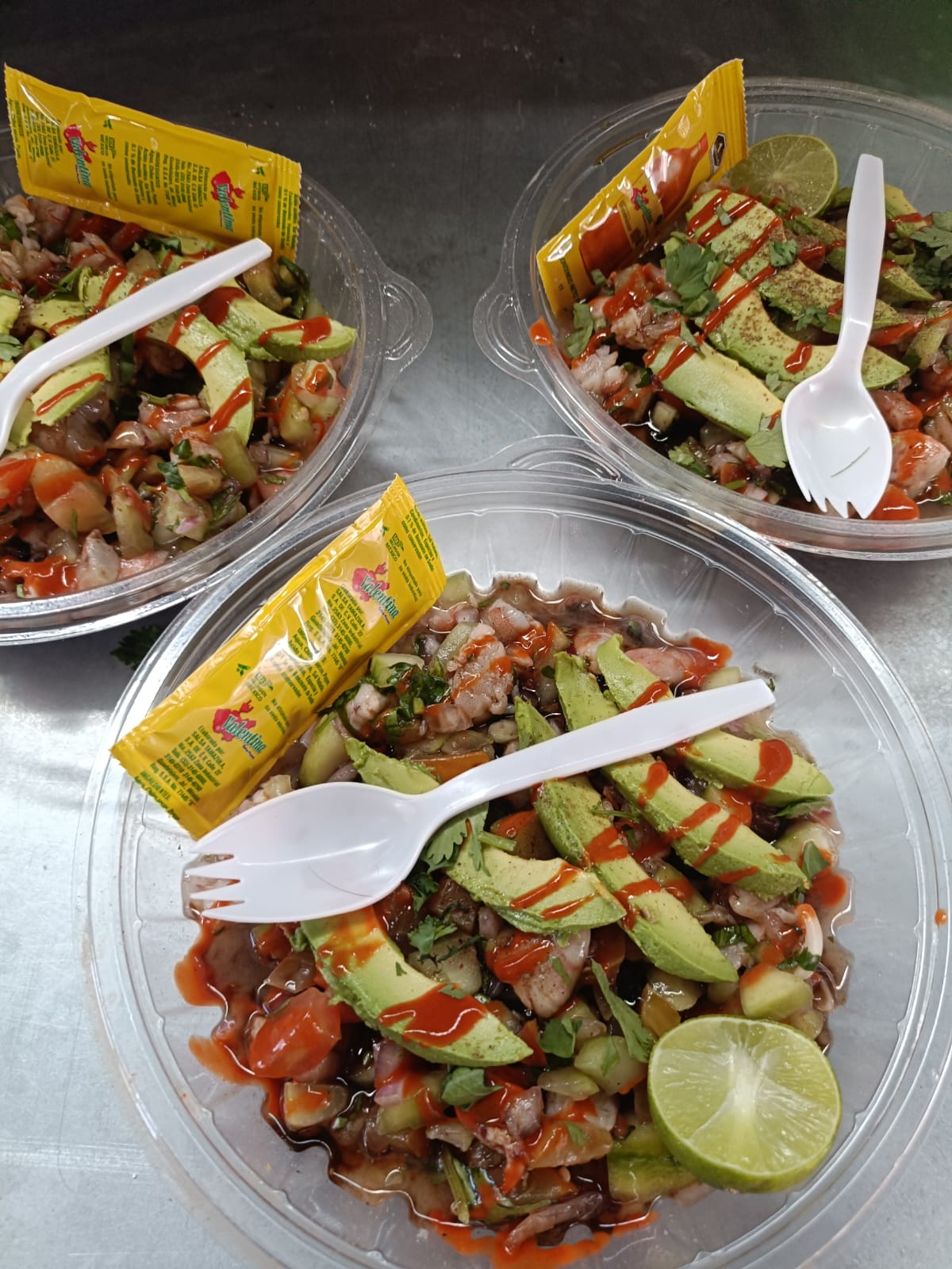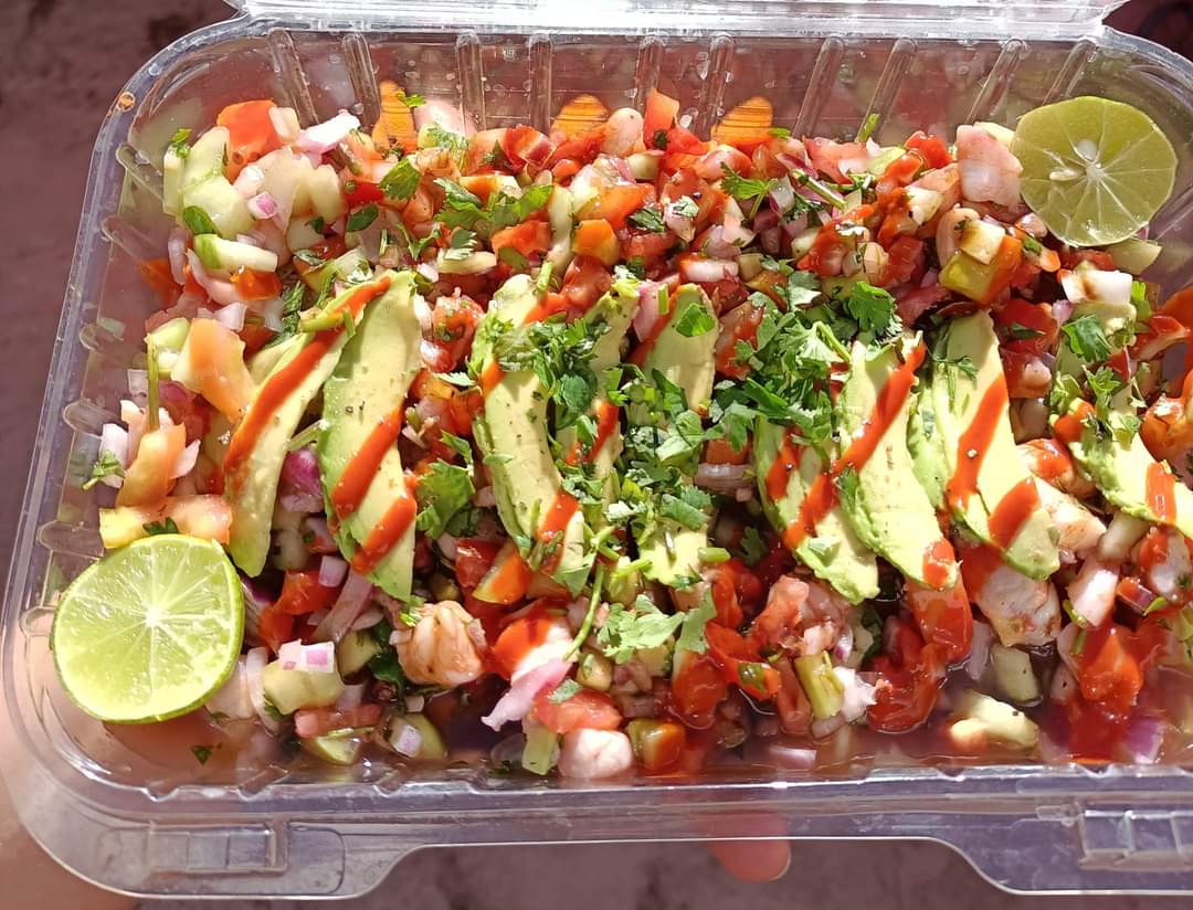 1 litro de ceviche de camaron con mix de verdura pepino cebolla tomate