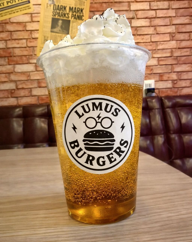 Bebida temática inspirada en la saga, sabor caramelo y crema, sin alcohol.