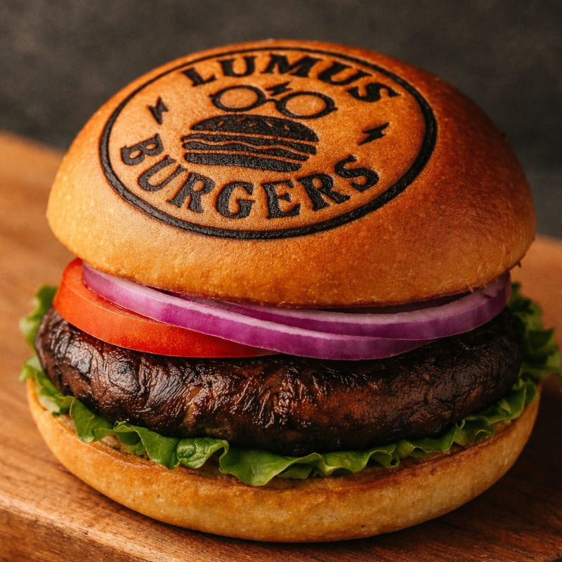 Hamburguesa vegetariana con hongo portobello, lechuga, tomate, cebolla, queso y pepinillos. Incluye papas fritas.