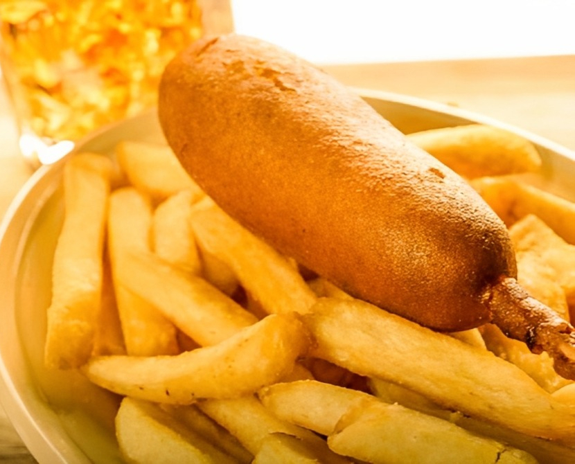 Banderilla acompañada con papas fritas.