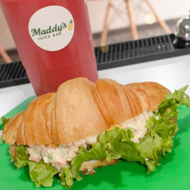 Croissant de mantequilla, lechuga italiana con ensalada de atún de la casa con aderezos.