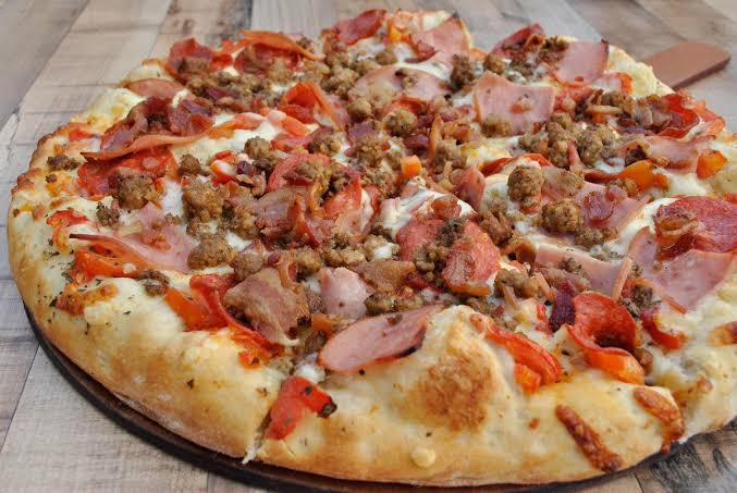 Pizza 12 rebanadas con (carne, chorizo, jalapeño).