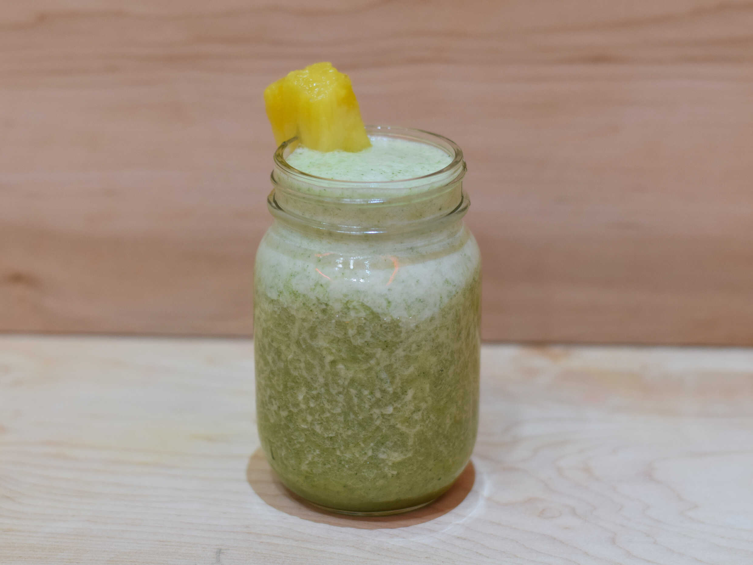 Piña, Pepino, Apio, Perejil, Espinaca, Nopal, Limon, con Jugo de Naranja. Chico o Grande.