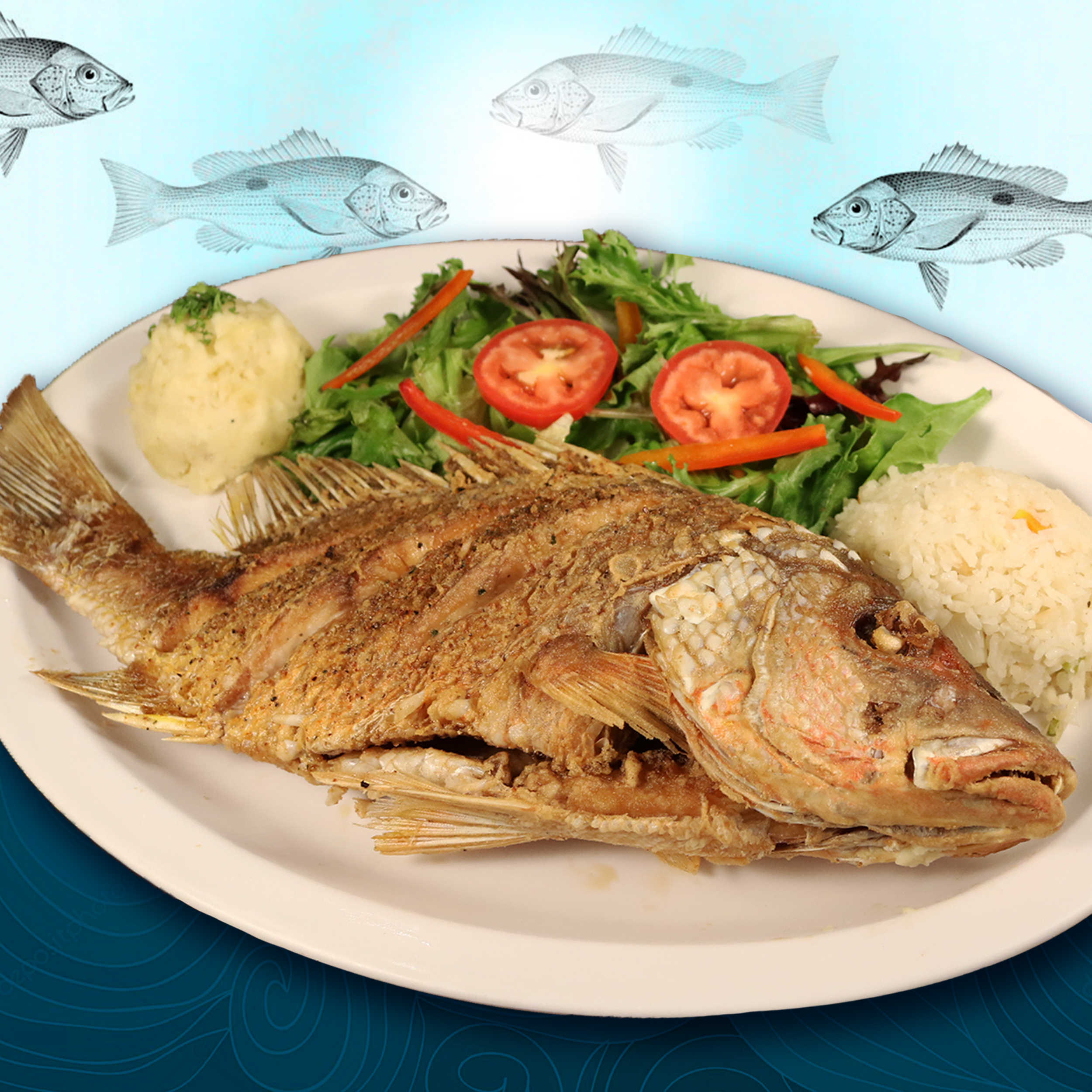 Pescado Entero (todos son Fritos en Aceite y Acompañado de Pure, Arroz y Ensalada)