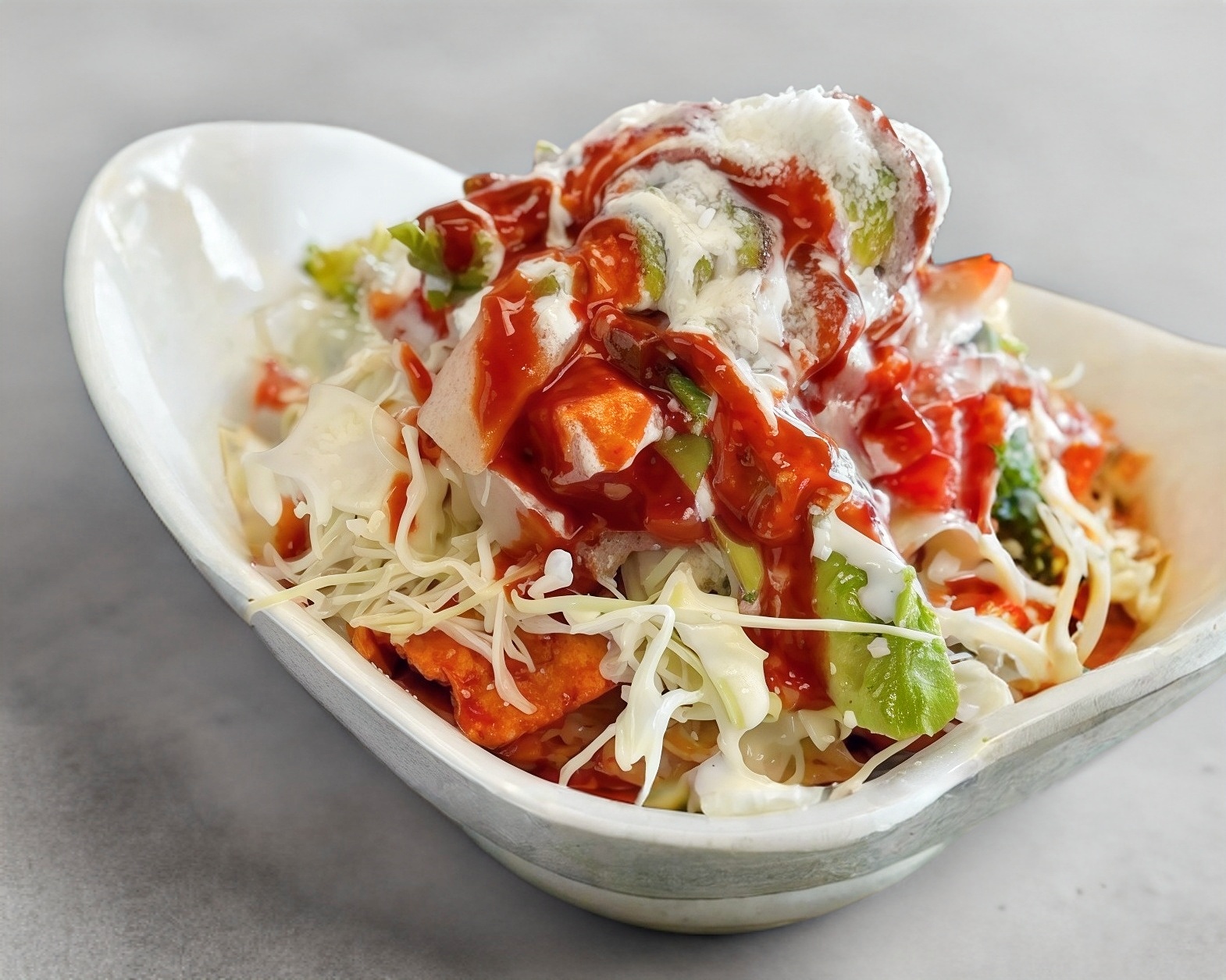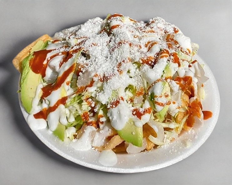 Chetos repollo cueritos tomate aguacate crema salsa y queso