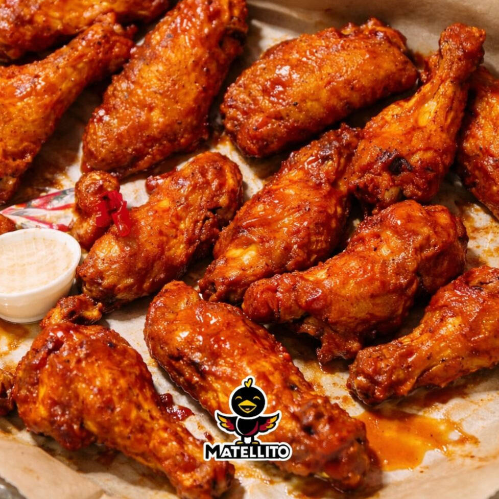 alitas 500gr. fritas con 150gr de papas aderezo y catsup