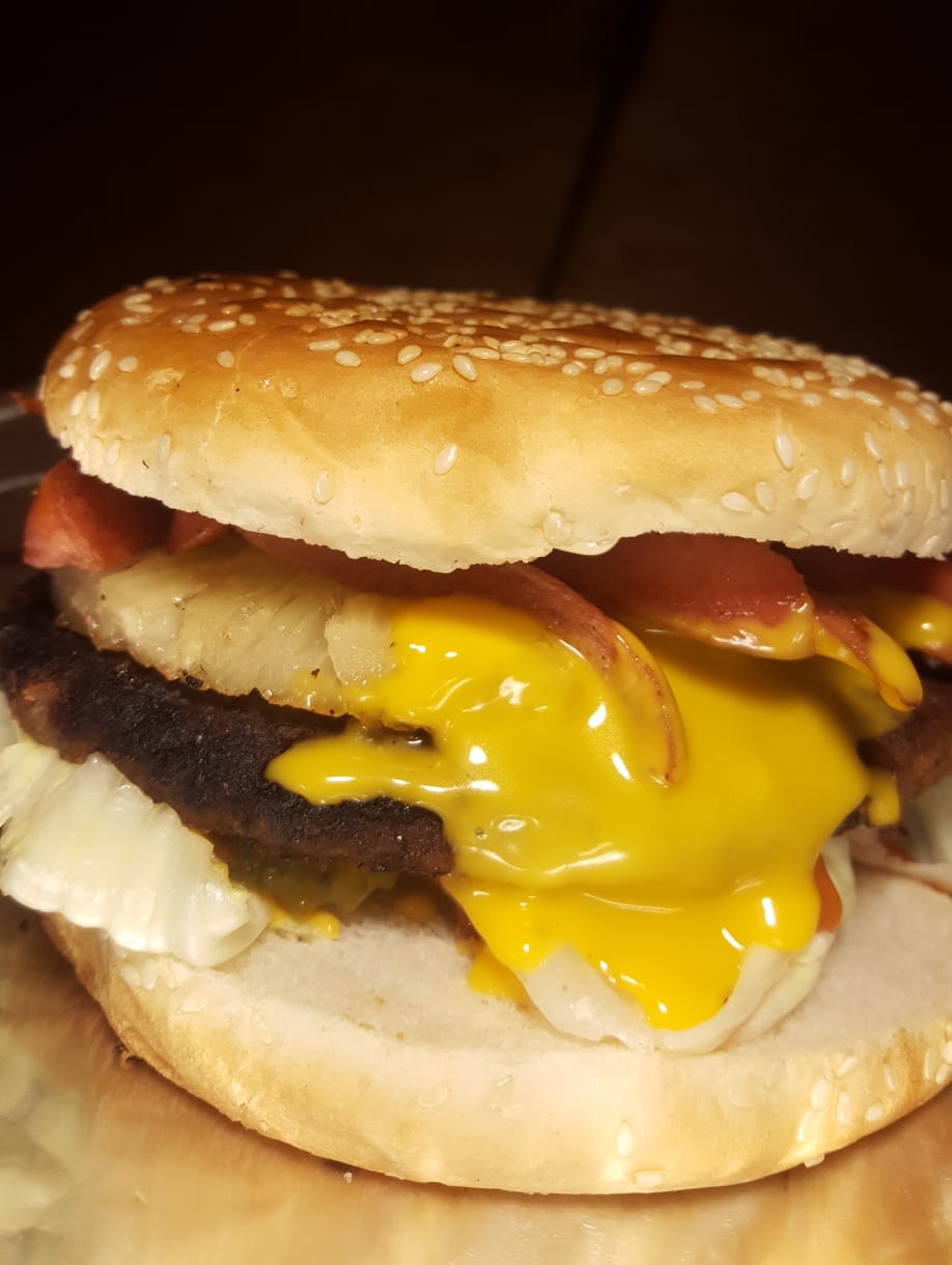 Carne de sirloin, piña, salchicha de pavo y cheddar