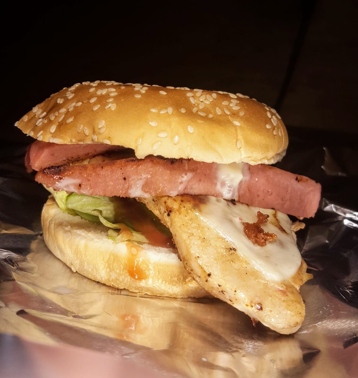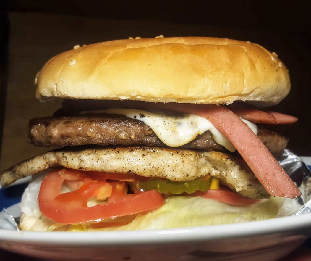 Carne de sirloin, queso cheddar y salchicha de pavo.