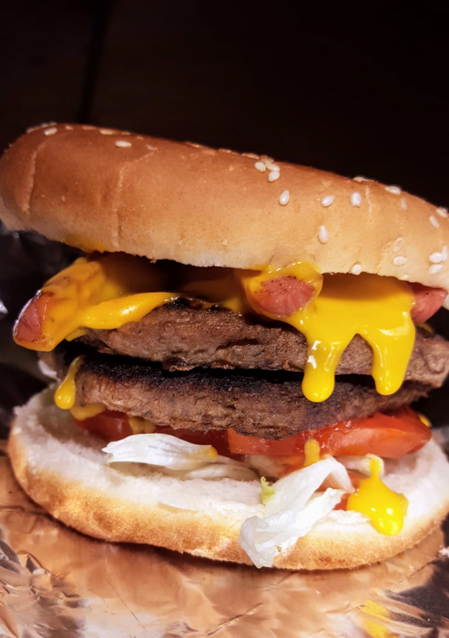 Doble carne de sirloin, salchicha de pavo y queso cheddar