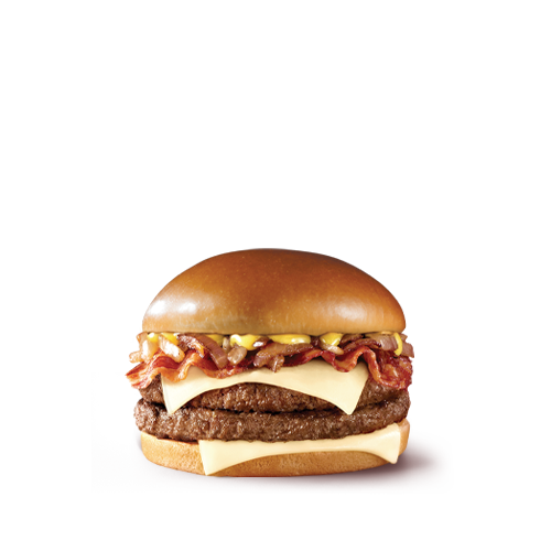 Hamburguesa con 2 carnes 100% de res, preparadas con cebolla, queso tipo americano, pepinillos, catsup y mostaza. Incluye papas medianas y refresco de 16Oz