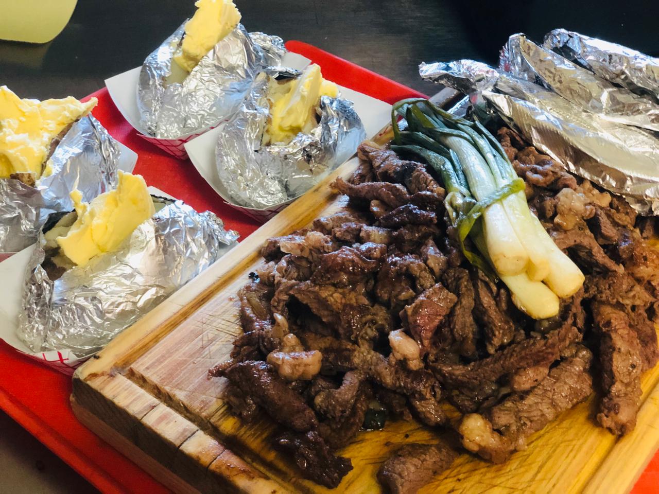 Corte de 400 Grs Acompañado de papa asada, cebollitas, tortillas y salsas