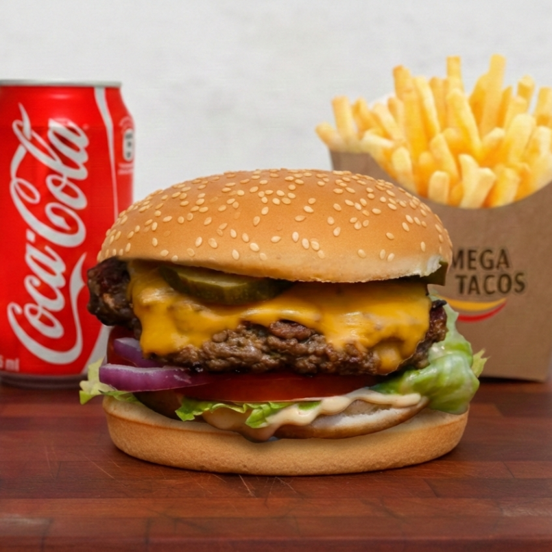 Hamburguesa Clásica 1/2 Libra + Papas Fritas + Refresco Lata 355 Ml