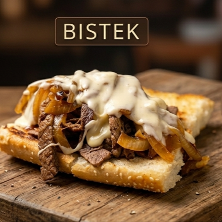 Delicioso bistec a la plancha con cebolla caramelizada y abundante queso derretido en pan tostado 15 cm.