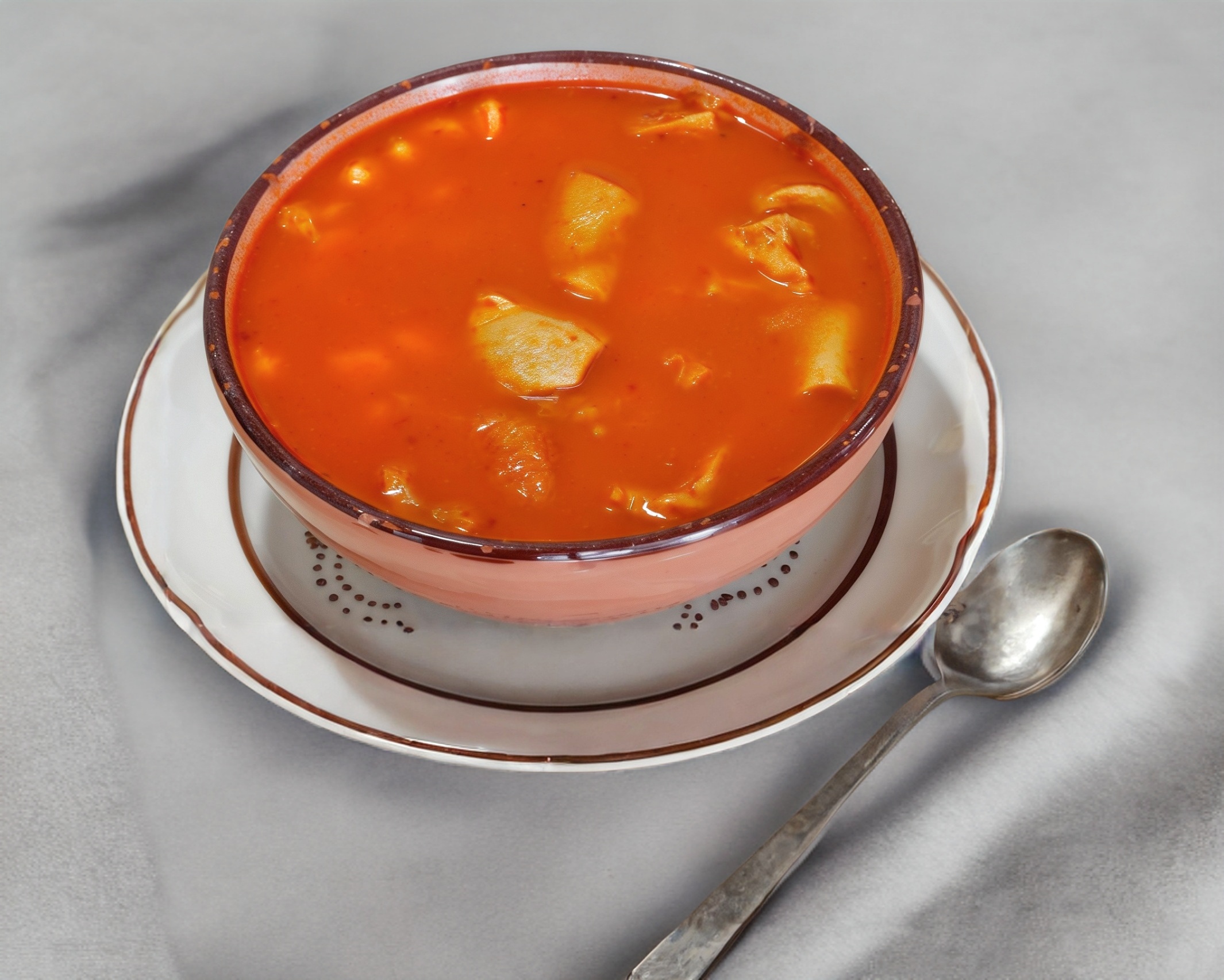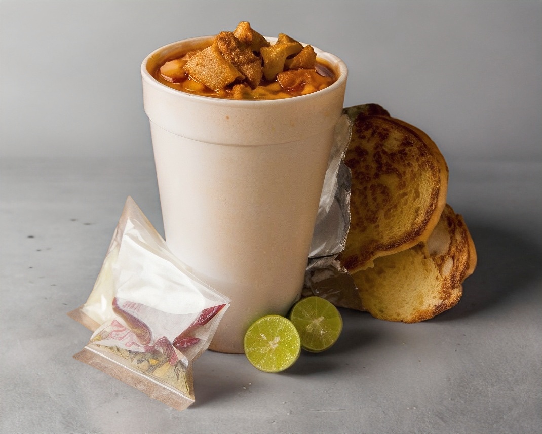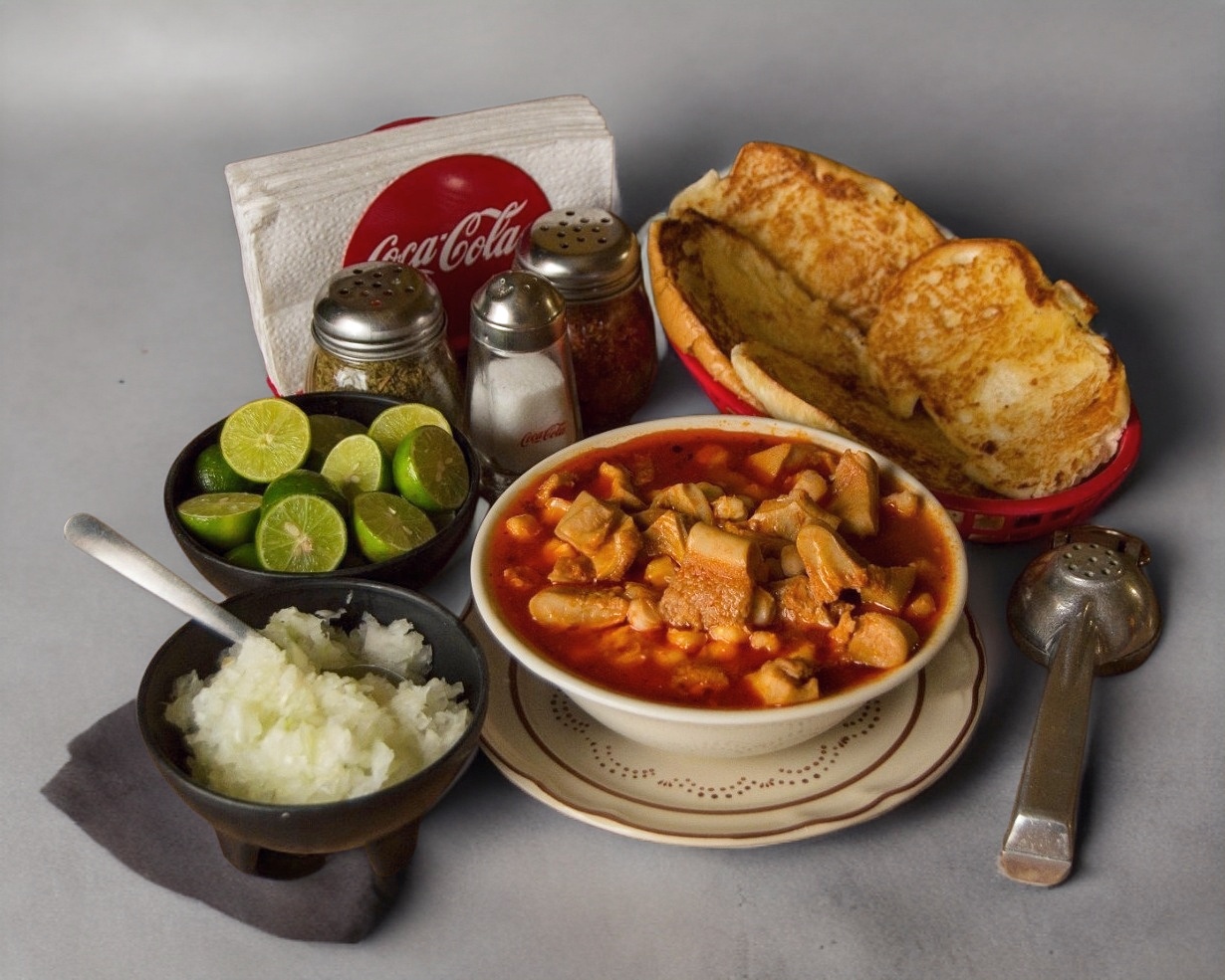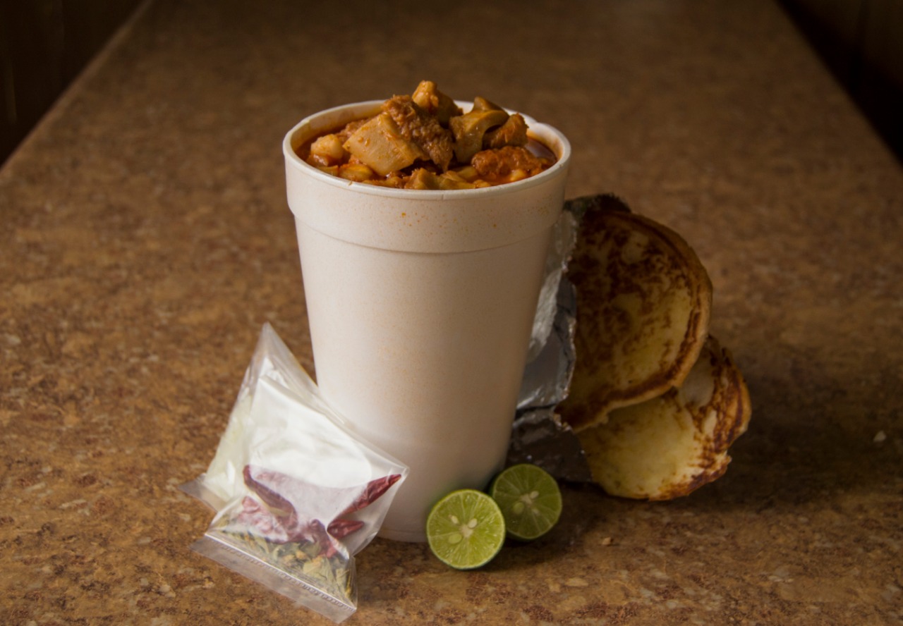 1 litro de menudo + 1 soda + 1 pan con mantequilla