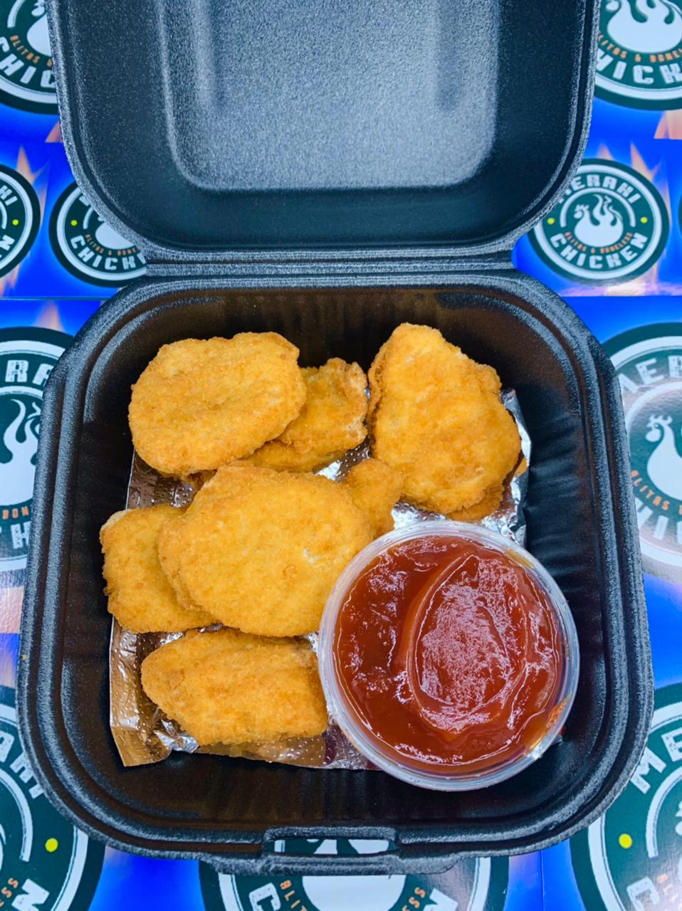 6 pz de nuggets de pechuga de pollo con 2 oz de catsup