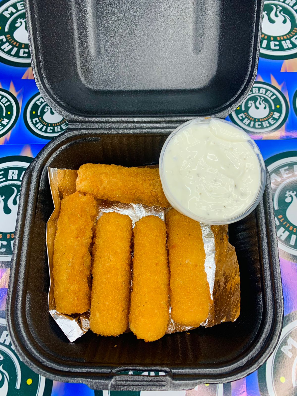 5 pz de dedos de queso de mozzarella, ranch.