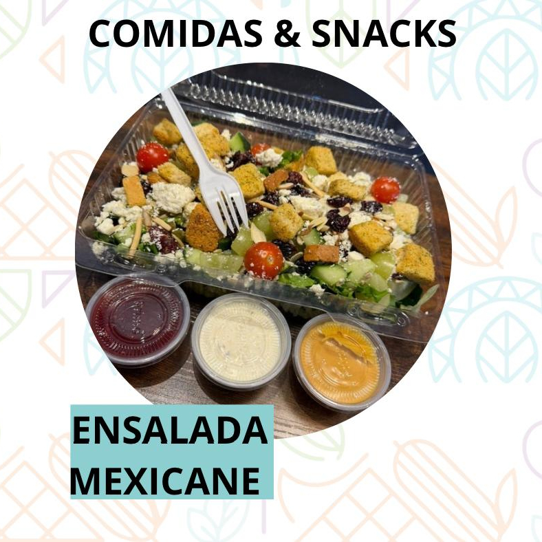 Lechuga · Espinaca · Queso panela · Queso Feta · Almendras f ileteadas · Uvas verdes o fresa, Semillas de girasol, Semillas de calabaza · Arándanos · Pepino, Crotones