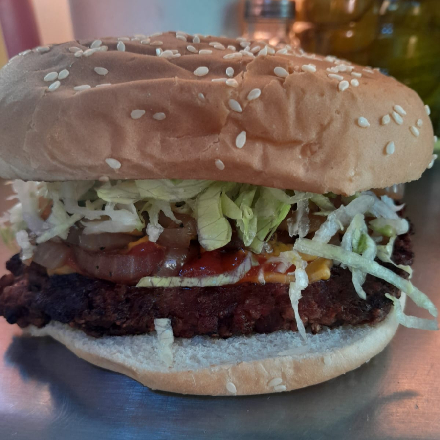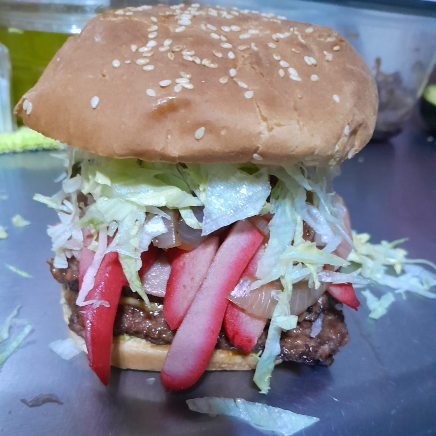 Carne, Queso, Lechuga, Cebolla, Pepinillos y Liquidos