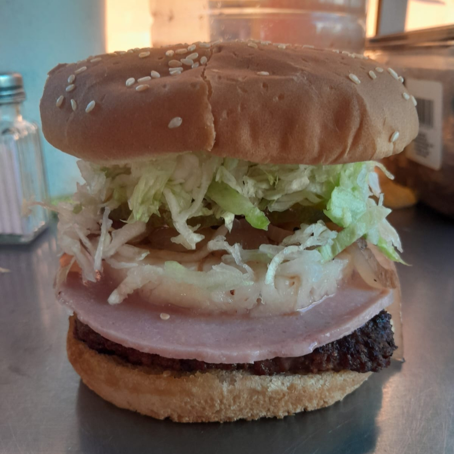 Doble carne, Jamon, Winnie, Aguacate,Queso, Lechuga, Cebolla, Pepinillos y Liquidos.