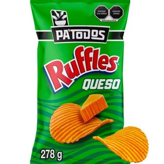 Rufles, frijoles, queso amarillo y chiles curtidos