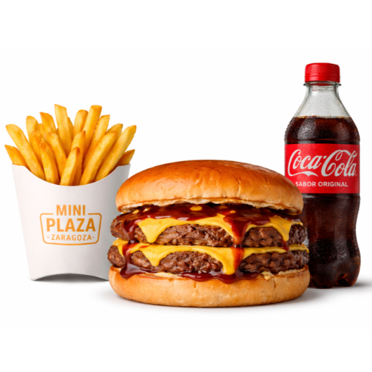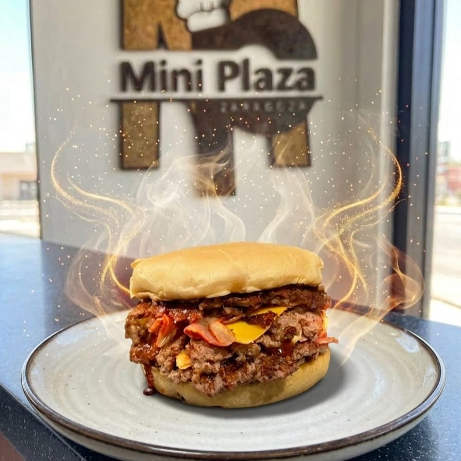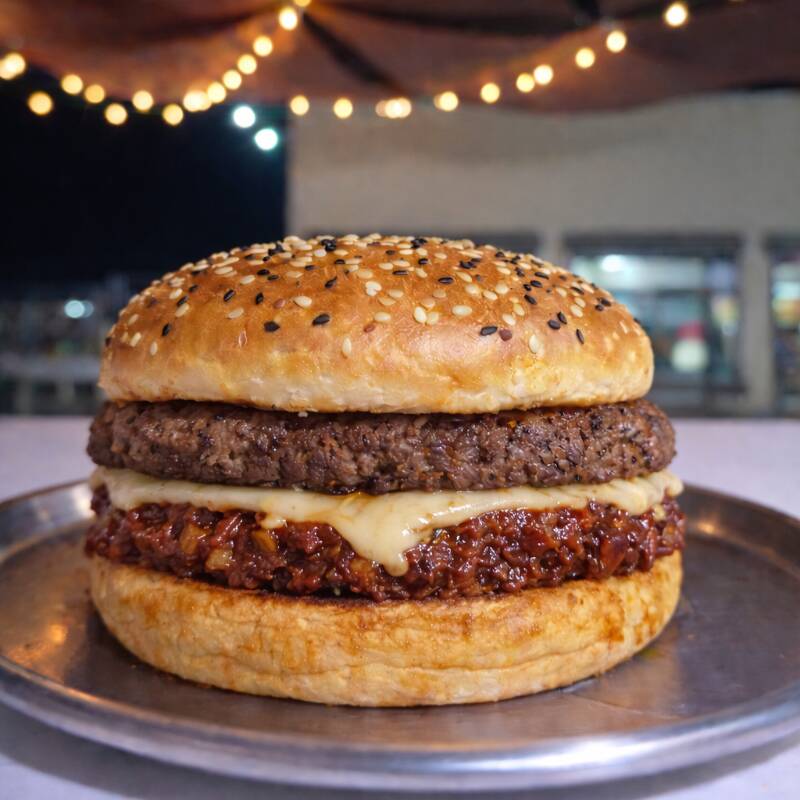 Smash de dos jugosas carnes con queso manchego derretido bañado en nuestra irresistible salsa de chipotle