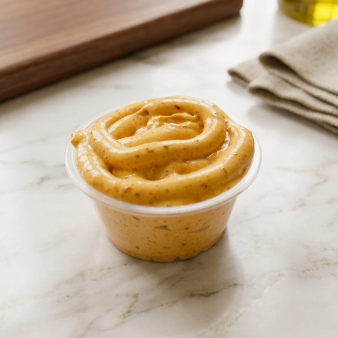 Deliciosas papas fritas doraditas, crujientes y calientitas con un salsita Chipotle