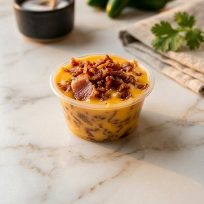 Deliciosa Salsa de Queso cheddar con Tocino en trocitos