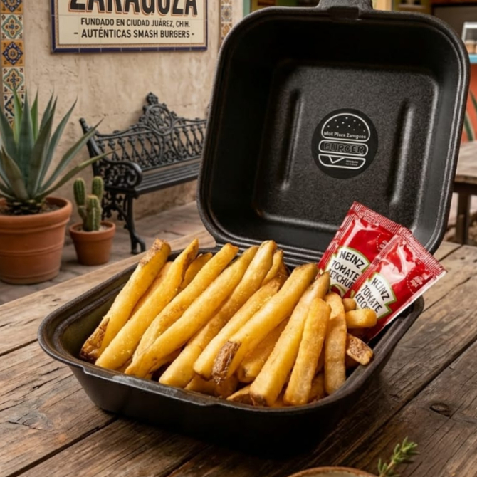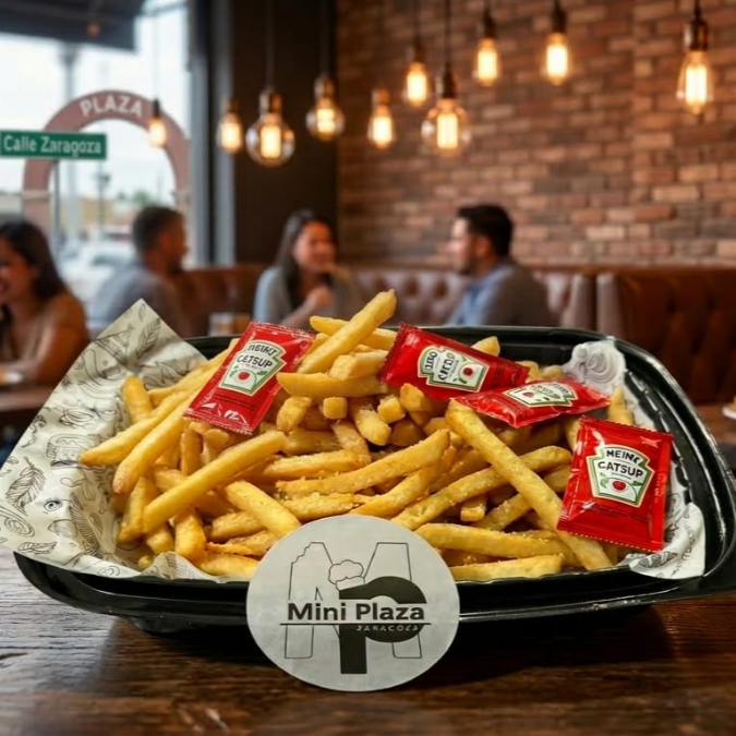Deliciosas Papas Fritas Doraditas, Crujientes y Calientitas con un Salsita Especial de la Casa