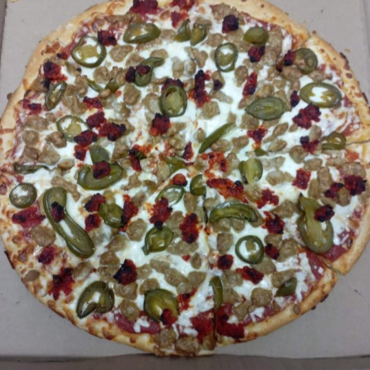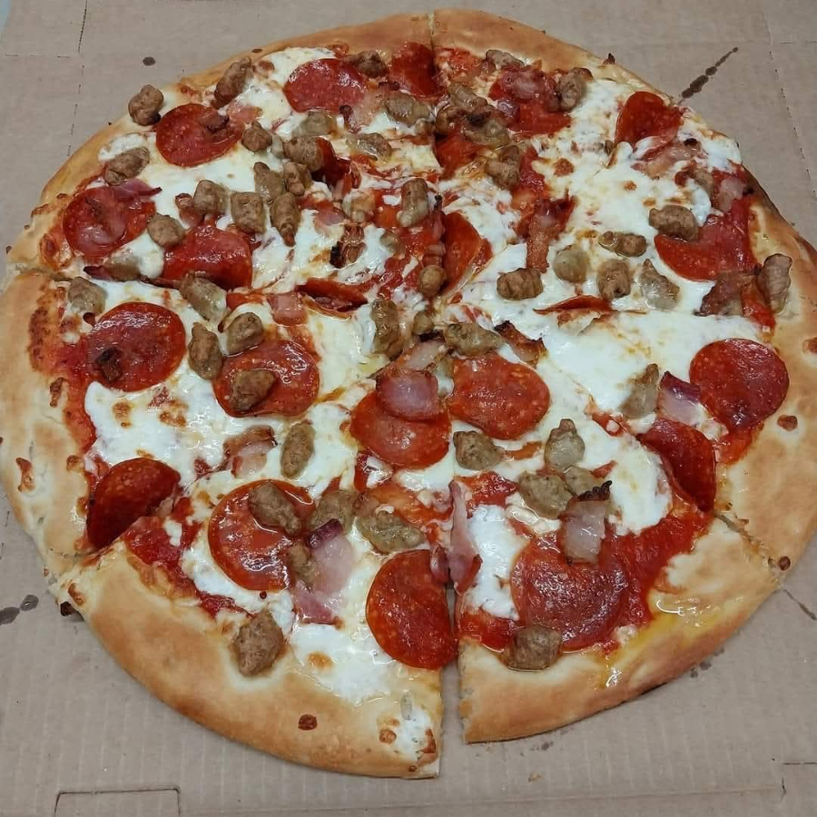 (Peperoni, champiñones, salchicha Italiana, pimiento morrón y cebolla)